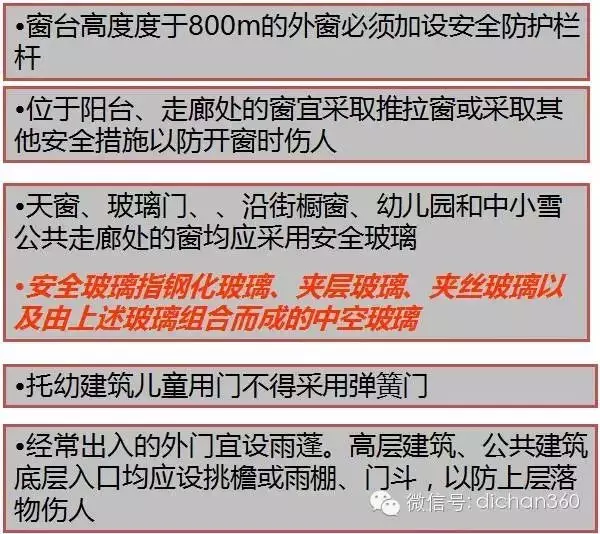 ❺玻璃幕墙下的出口处,应设置雨蓬或安全遮棚。靠近玻璃幕墙的首层地面处宜设绿化带,以防行人靠近。