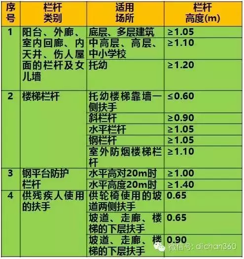 ❷间作安全防护栏杆时,其高度从露面算起应不低于1.05m(多层)和1.10m(高层)